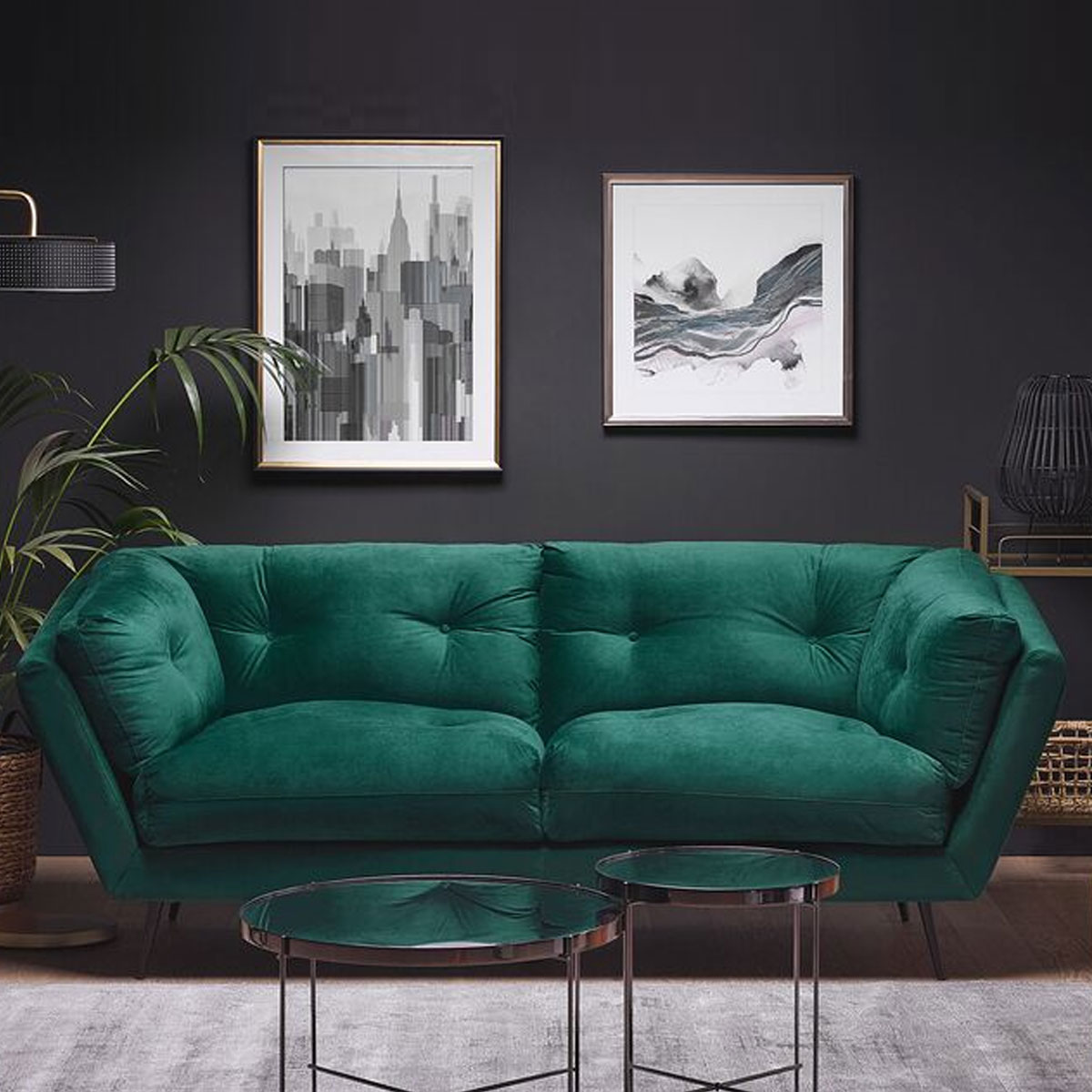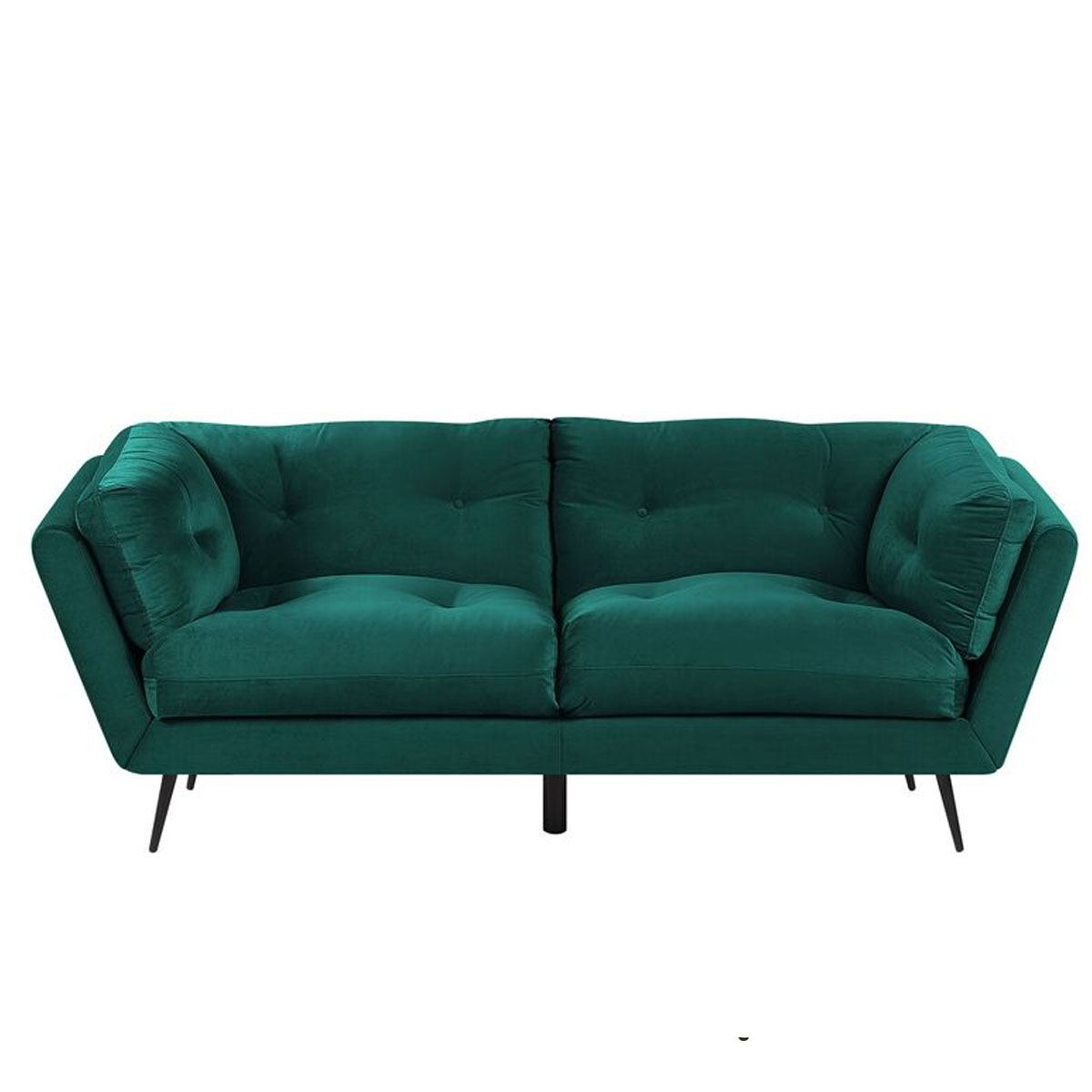 Luxurious sofa with decorative tufting is a stylish addition to any glam, retro or modern living room. Thickly padded seating cushions provide a comfortable place to sit for three when back and arm ones p...